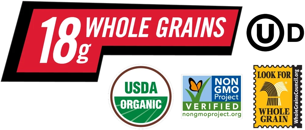 Organic whole wheat flour, organic rolled oats, organic semi-sweet chocolate (organic cane sugar, organic unsweetened chocolate, organic cocoa butter, organic soy lecithin, organic natural flavor), organic vegetable oil (organic sunflower and/or organic expeller pressed canola oil), organic brown sugar, water, organic brown rice syrup, organic palm oil*, organic honey, organic agave fiber (inulin), organic corn starch, organic malt extract, contains less than 2% of each of the following: organic vegetable glycerin, organic oat bran, organic dry roasted almonds, organic sunflower kernels, organic oat fiber, organic chia seeds, organic canola lecithin, sea salt, baking soda, organic natural flavor, natural flavors, organic cocoa.